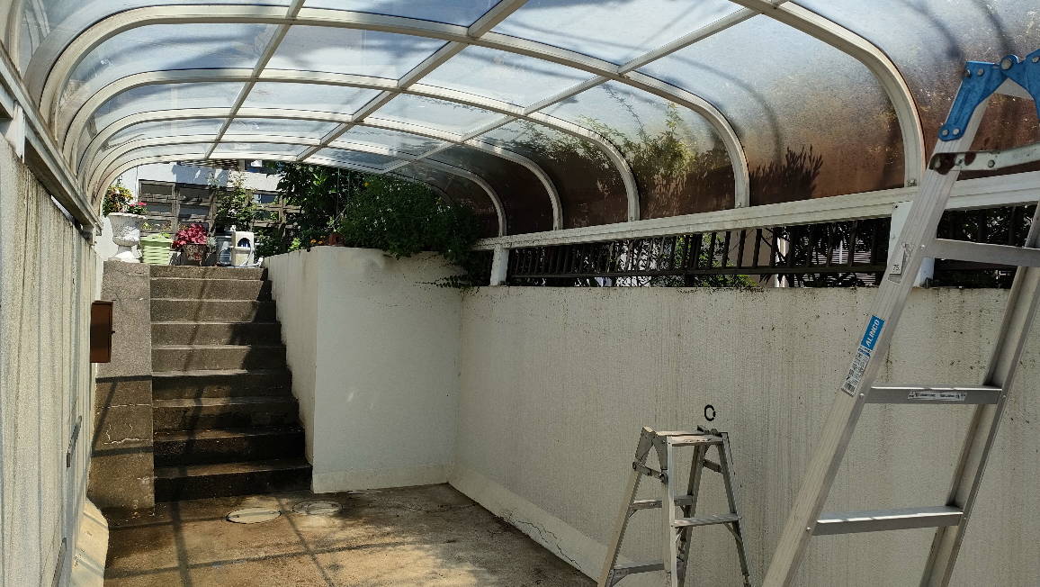 塀上設置アーチタイプカーポート撤去前2