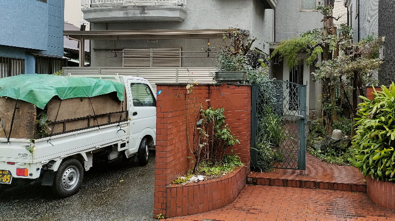 お部屋の中は部屋毎に整理され搬出準備まで終わってました。外のお庭も植木の枝落としまで完了されてましたが、その後遠方から作業ということもあり止まってしまったとお話がありました