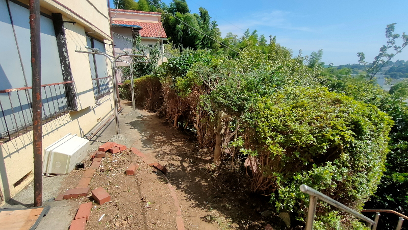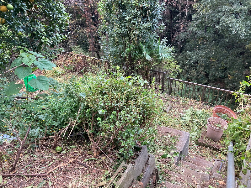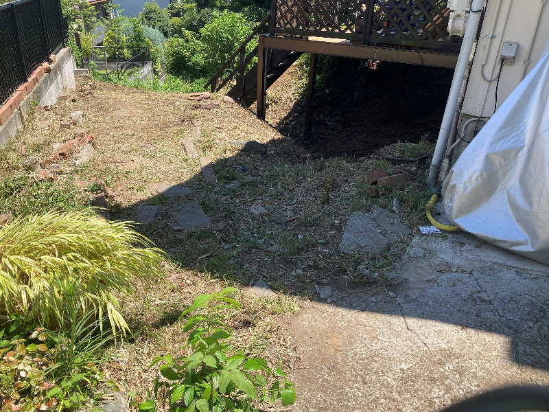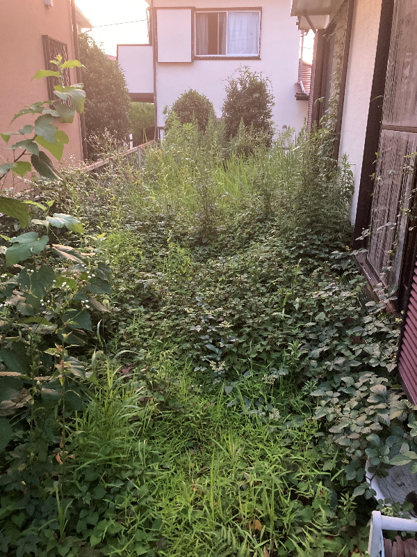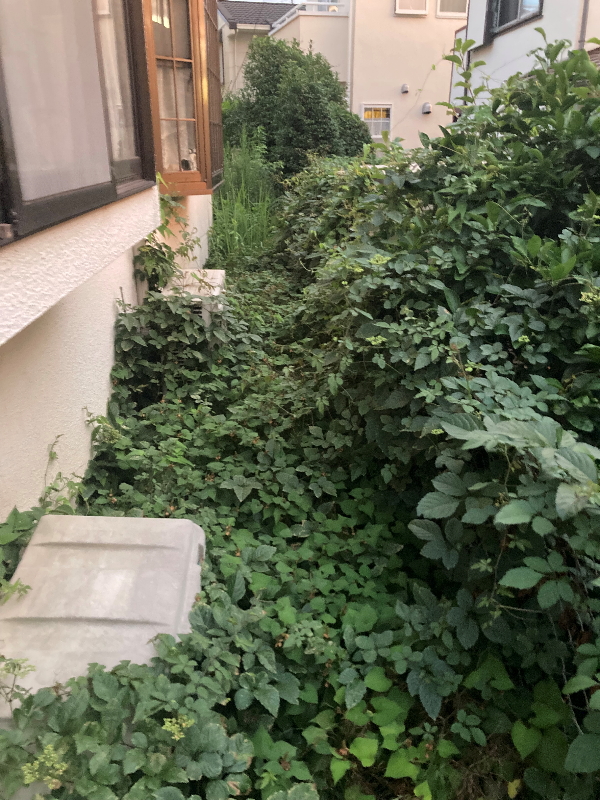 自宅裏の畑から伸び始めてた雑草が、地境超えて自宅にまで生えてきたので草を抜いたり刈ったり作業してほしいと川崎市のお客様から連絡があり見積り後即当日作業しました