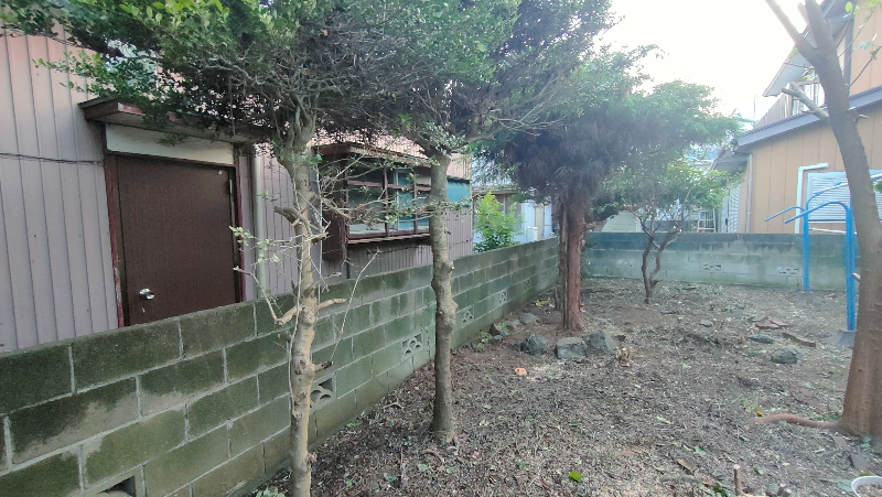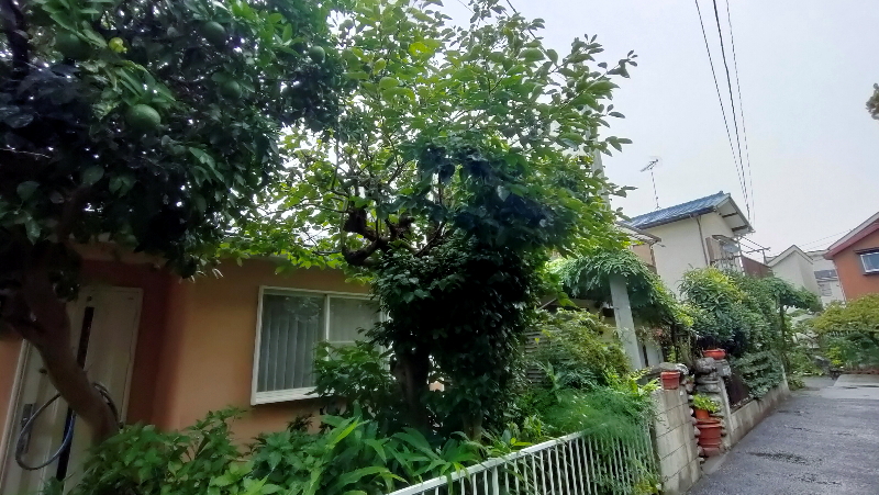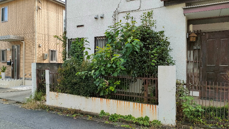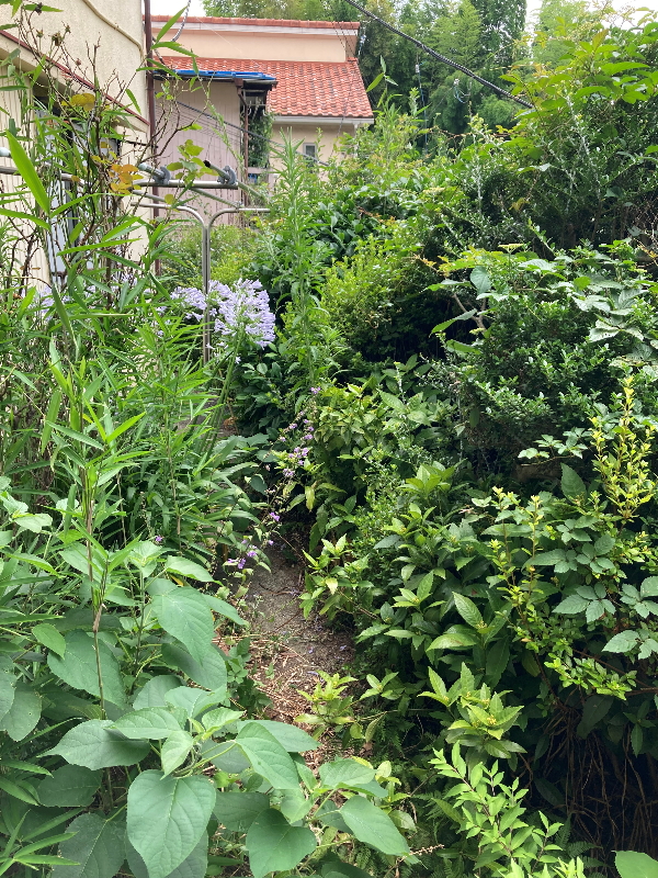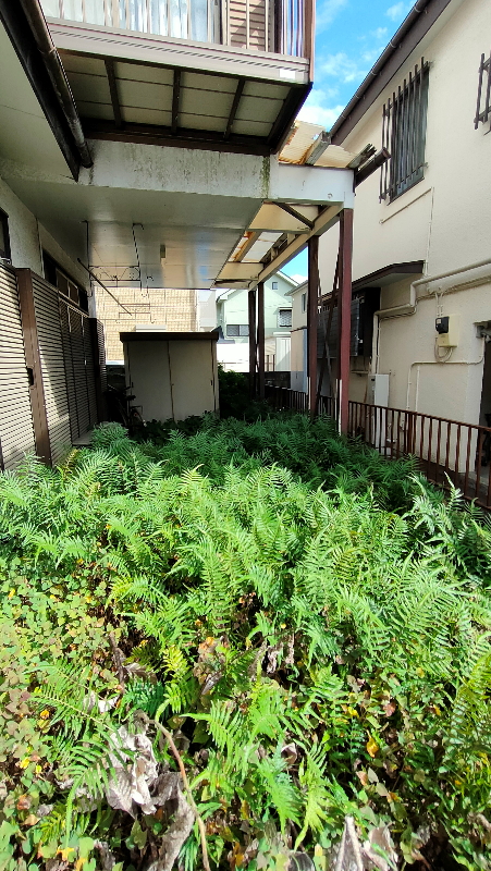 コンクリートで通路になるアパート周りも植え込みが伸びてしまい庭に見えていましたが、