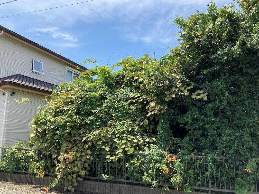 相模原市のリピーターのお客様より家回りの草やツタの除草依頼があり作業しました