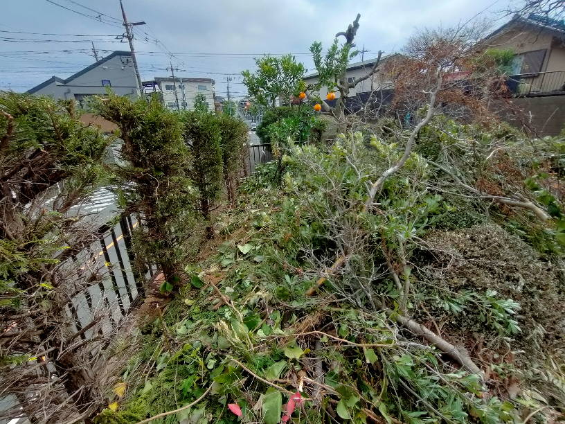 町田市のお客様よりご相談があり、庭木の伐採後の後片付け作業をしました。